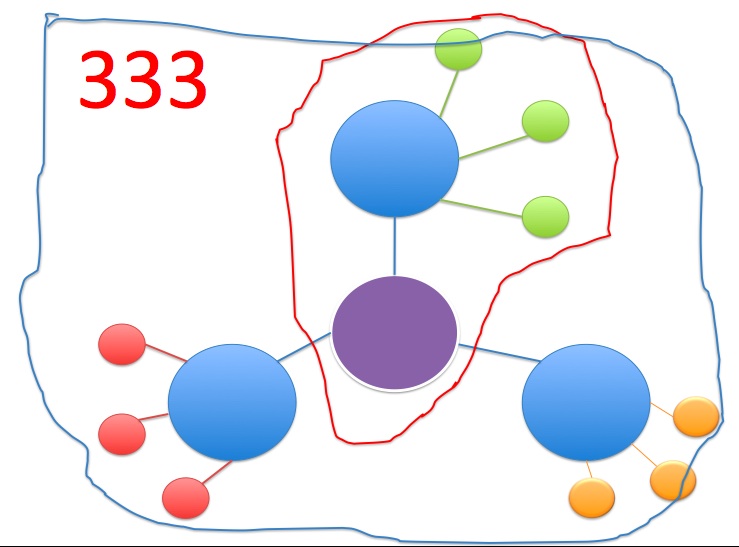 Ide ini dikembangkan dengan rumus 333. Apa itu? Rumus ini berarti 3 ide, 3 ide anak, dan 3 ide cucu. 3 ide adalah gagasan yang telah mereka tulis di tengah kertas. Selanjutnya, seperti membuat mind map, peserta mengembangkan menjadi 3 ide yang lebih spesifik. Masing-masing ide spesifik ini dikembangkan dengan contoh, fakta, penjelasan atau apapun yang jumlahnya juga 3 untuk setiap ide spesifik.